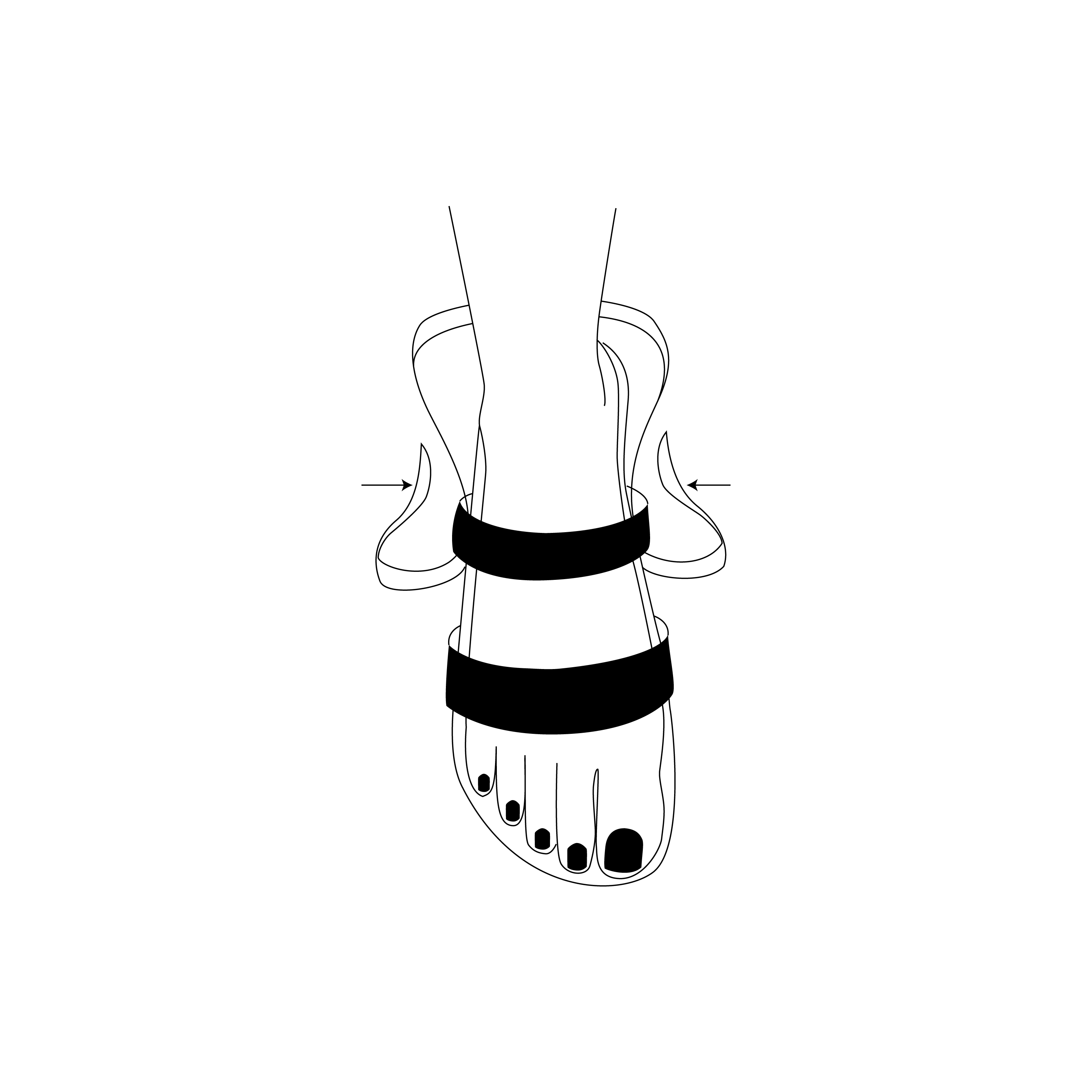 Loop the ends of the GhroovStrappies clear straps through your sandal straps. Pull snug around the ankle. Remove the white liners and adhere back onto the elastic strap. Press firmly with fingers and thumb to secure the adhesive bonding to the elastic strap to hold in place. *do not adhere directly onto your sandal